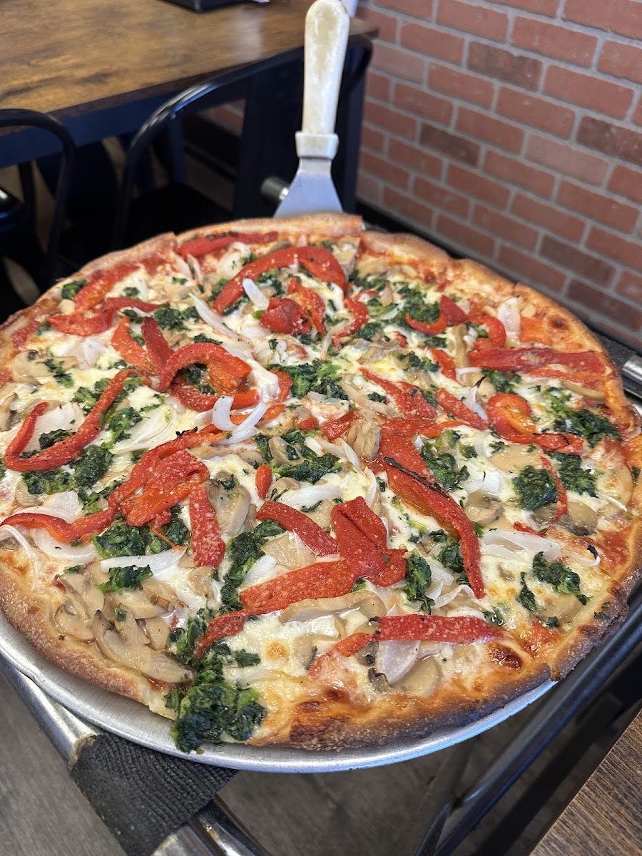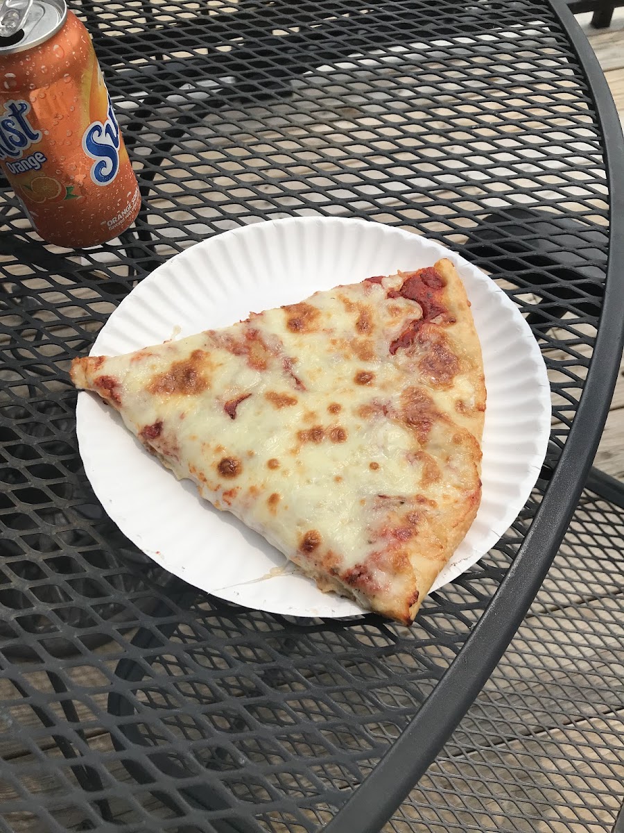 Very cool neighborhood spot along the river. Love the vibe in this place, it’s got an old school charm with a new school vibe. Family run, service at the counter was excellent. Good pizza, more of a dish style pizza, which I like. Great spot to grab a slice on a beautiful day and eat outside.